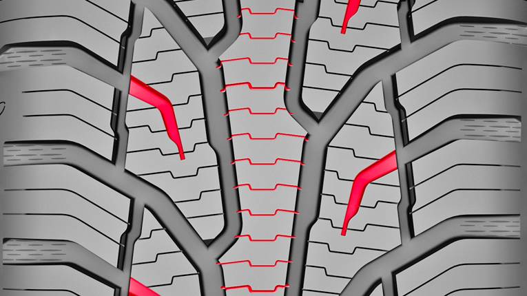 Śnieg Specjalna geometria bloków bieżnika i wielofunkcyjna konstrukcja lameli pozwalają na lepszą kompresję śniegu i zapewniają krótszą drogę hamowania. |