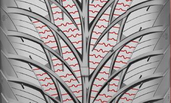 Producent zastosował w środkowym obszarze opony zimowe nieregularne lamele, które poprawiają trakcję na zaśnieżonej nawierzchni. To rozwiązanie skróciło również drogę hamowania na śniegu.