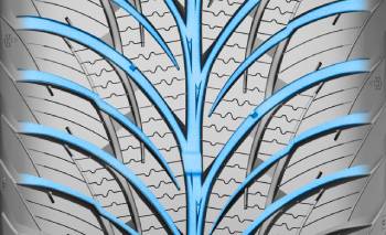 Szeroki rowek wzdłużny oraz rowki boczne opony zapewniają szybkie odprowadzanie wody i błota pośniegowego spod kół. Zmniejsza to możliwość wystąpienia zjawiska aquaplaningu.
