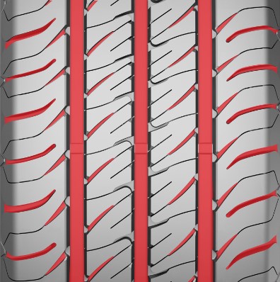 Zoptymalizowany wzór bieżnika w połączeniu z nowoczesną mieszanką gumową, powoduje, że styk opony z nawierzchnią jest na odpowiednim poziomie. Zmniejsza to opory toczenia i wydłuża żywotność opony.
